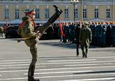Репетиция военного парада в ознаменование 76-й годовщины Победы в Великой Отечественной войне прошла на Дворцовой площади. Военнослужащие Западного военного округа во время репетиции.