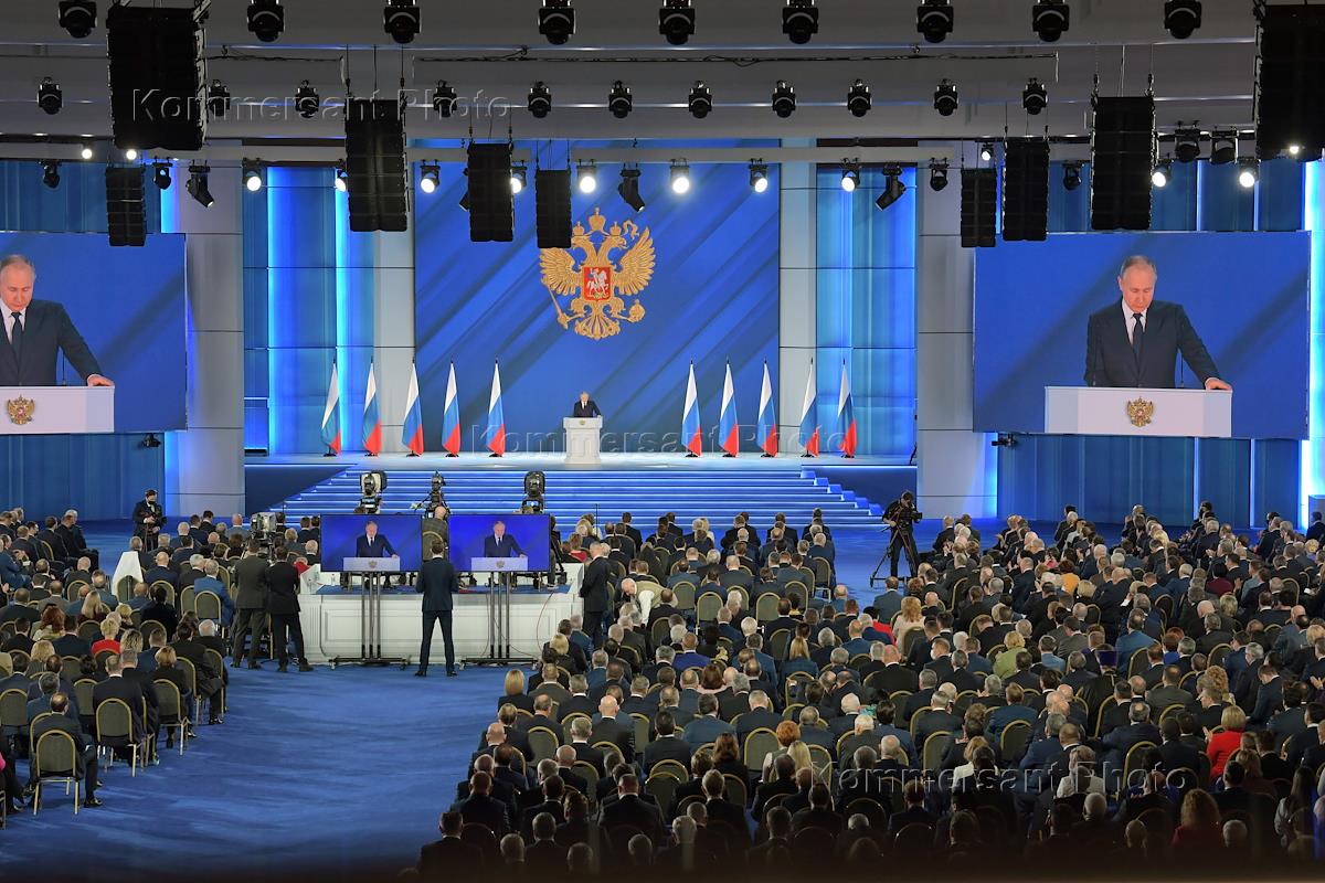 Ежегодное послание президента России Владимира Путина Федеральному Собранию в Центральном выставочном зале "Манеж".