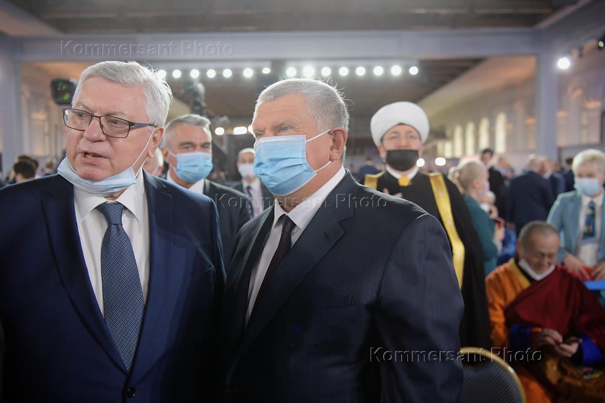Ежегодное Послание президента России Владимира Путина Федеральному Собранию в Центральном выставочном зале "Манеж". Ректор Московского государственного института международных отношений (Университет) (МГИМО) МИД России Анатолий Торкунов (слева) и главный исполнительный директор, председатель правления ПАО "НК "Роснефть" Игорь Сечин (справа) перед началом ежегодного послания.