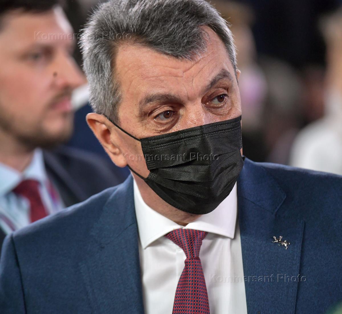 Ежегодное послание президента России Владимира Путина Федеральному Собранию в Центральном выставочном зале "Манеж". Заместитель председателя комитета Государственной думы России по физической культуре, спорту, туризму и делам молодежи Валерий Газзаев перед началом ежегодного послания.