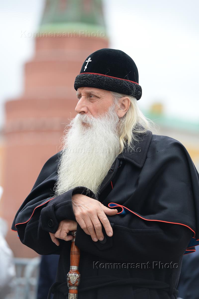 Ежегодное послание президента России Владимира Путина Федеральному Собранию в Центральном выставочном зале "Манеж". Епископ Русской православной старообрядческой церкви митрополит Корнилий перед началом послания.