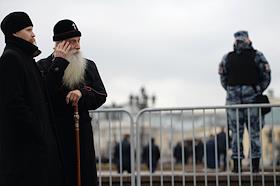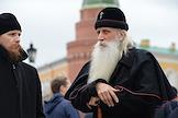 Ежегодное послание президента России Владимира Путина Федеральному Собранию в Центральном выставочном зале "Манеж". Епископ Русской православной старообрядческой церкви митрополит Корнилий (справа) перед началом послания.