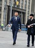 Ежегодное послание президента России Владимира Путина Федеральному Собранию в Центральном выставочном зале "Манеж". Член комитета Государственной думы (ГД) России по контролю и Регламенту Иван Демченко (слева) и председатель комитета ГД России по безопасности и противодействию коррупции Василий Пискарев (в центре) перед началом Ежегодного послания президента России Владимира Путина Федеральному Собранию.