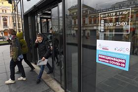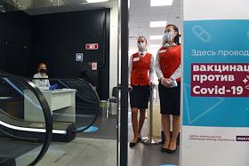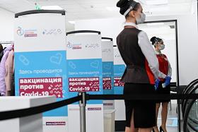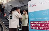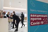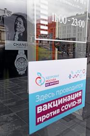 Вакцинация от коронавирусной инфекции COVID-19. Жанровая фотография. Прививочный пункт в Центральном универсальном магазине (ЦУМ).