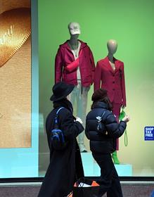 Центральный универсальный магазин (ЦУМ). Стеклянная витрина ЦУМа. Жанровая фотография. Прохожие у витрины.