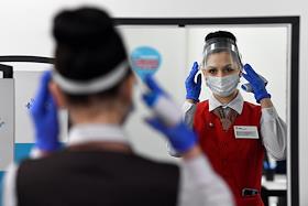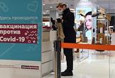 Вакцинация от коронавирусной инфекции COVID-19. Жанровая фотография. Прививочный пункт в Центральном универсальном магазине (ЦУМ). Регистрация пациентов.