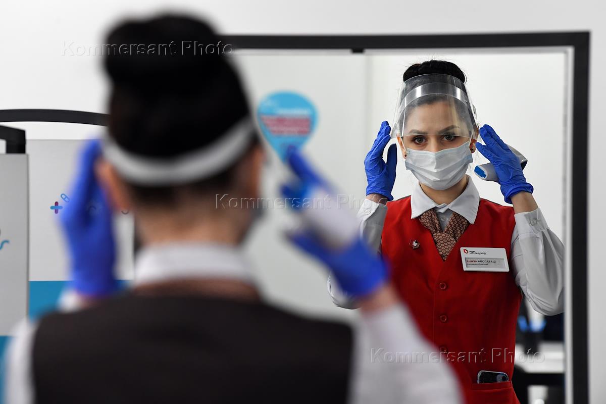 Вакцинация от коронавирусной инфекции COVID-19. Жанровая фотография. Прививочный пункт в Центральном универсальном магазине (ЦУМ). Регистрация пациентов перед вакцинацией.