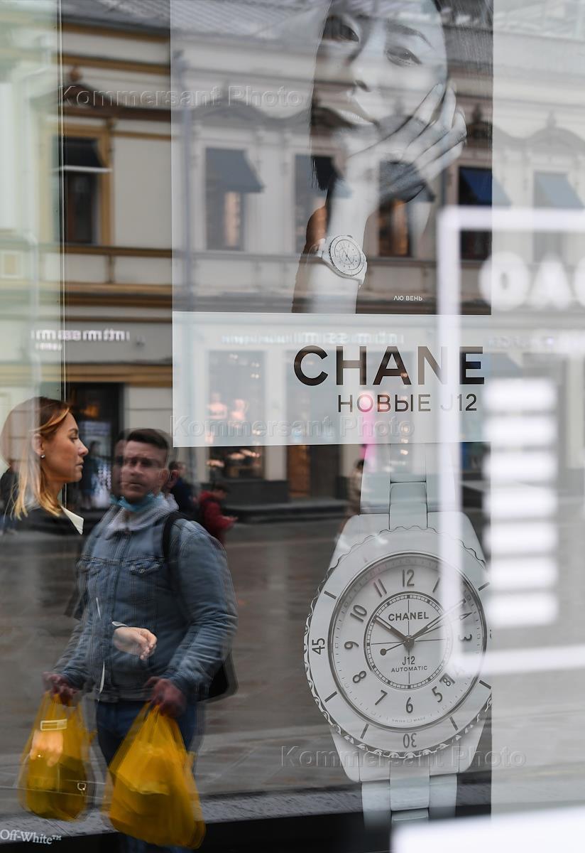 Central Department Store (TSUM). Glass showcase TSUM. Advertising of Chanel watches.