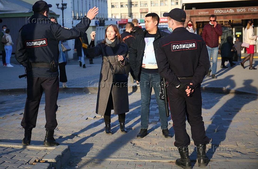 Несогласованная акция в поддержку оппозиционера Алексея Навального в центре города. Сотрудники полиции и участники во время акции.