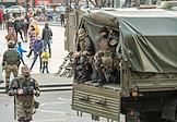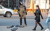 Несогласованная акция в поддержку оппозиционера Алексея Навального. Сотрудники Росгвардии в оцеплении места проведения акции.