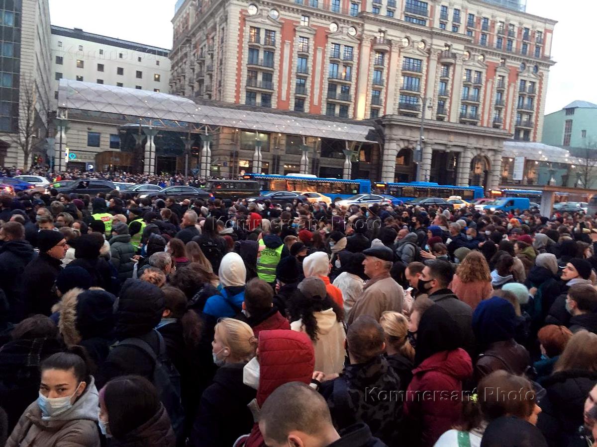 Uncoordinated rally in support of opposition leader Alexei Navalny. The situation is in the city center. Manezhnaya Square.