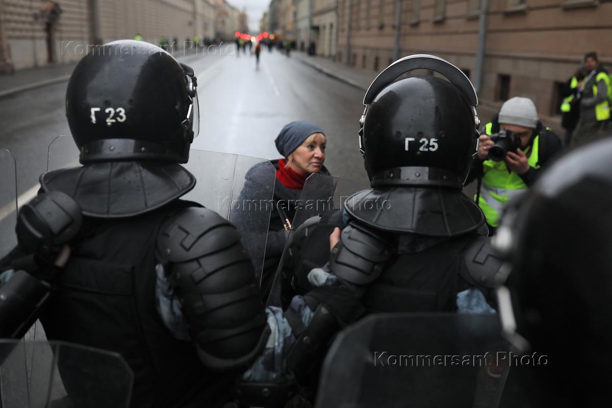 Несогласованная акция в поддержку политика Алексея Навального в центре Санкт-Петербурга