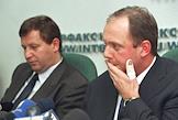 После собрания акционеров компании НТВ было назначено новое руководство : председателем совета директоров телекомпании НТВ Альфред Кох (слева) и генеральным директором телеканала Борис Йордан (справа). В агентстве "Интерфакс" состоялась пресс-конференция нового руководства.