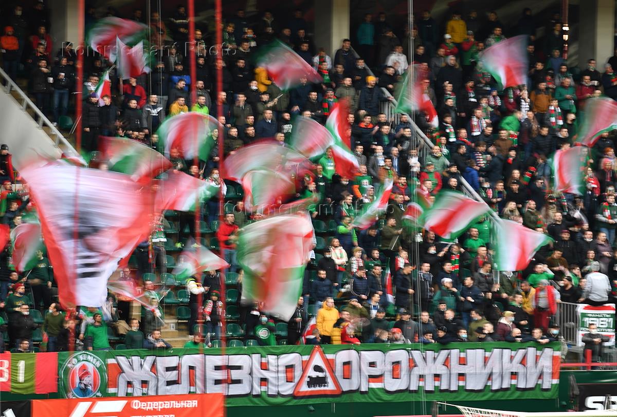 БЕТСИТИ Кубок России по футболу 2020-2021 гг. 1/2 финала. Матч между командами "Локомотив" (Москва) - ЦСКА (Москва) на стадионе "РЖД Арена". Зрители во время матча.
