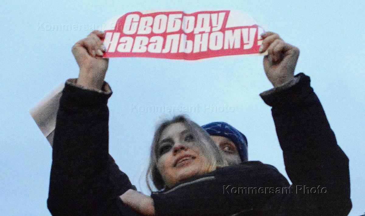 Несогласованная акция в поддержку политика Алексея Навального. Участники во время акции.