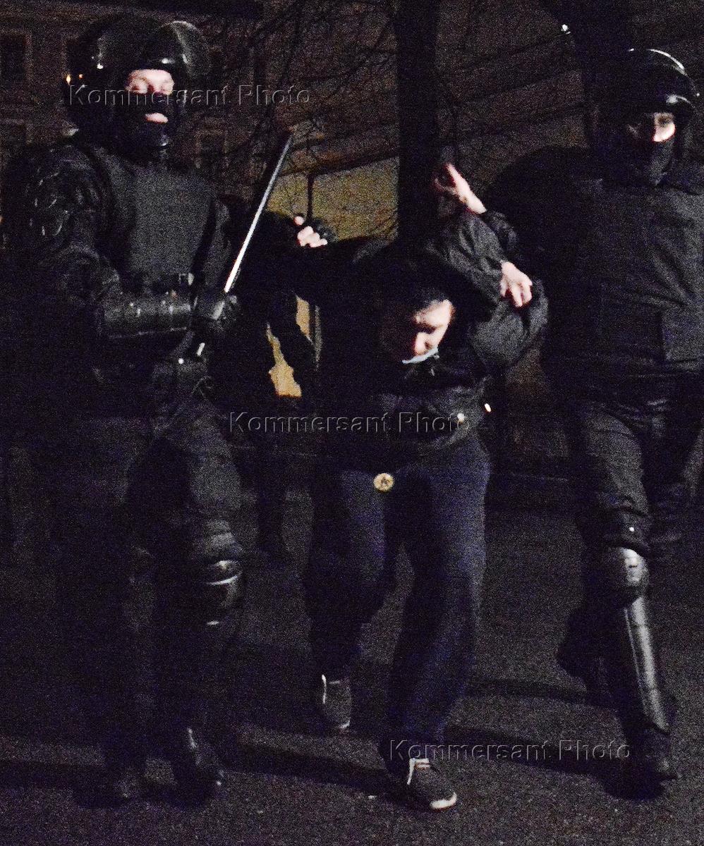 Несогласованная акция в поддержку политика Алексея Навального. Сотрудники полиции во время задержания участника акции.