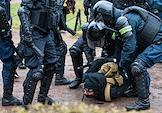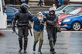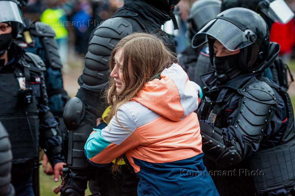 Несогласованная акция в поддержку политика Алексея Навального. Сотрудники полиции во время задержания участника акции.