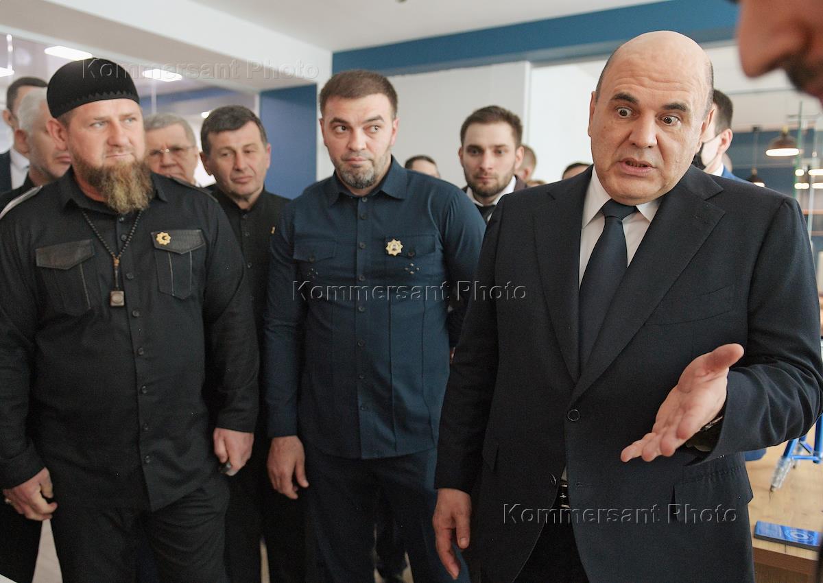 Рабочая поездка председатля правительства России Михаила Мишустина в Чеченскую Республику. Председатель Правительства России Михаил Мишустин (слева) и глава Чеченской Республики Рамзан Кадыров (справа) во время посещения Грозненского государственного нефтяного технического университета имени академика М.Д. Миллионщикова.