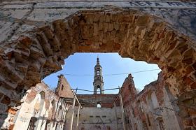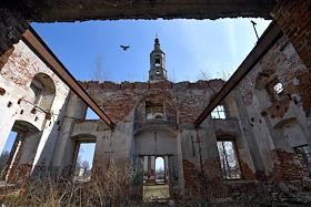 Виды поселка Поселок Поречье-Рыбное. Полуразрушенное здание церкви Никиты Мученика.