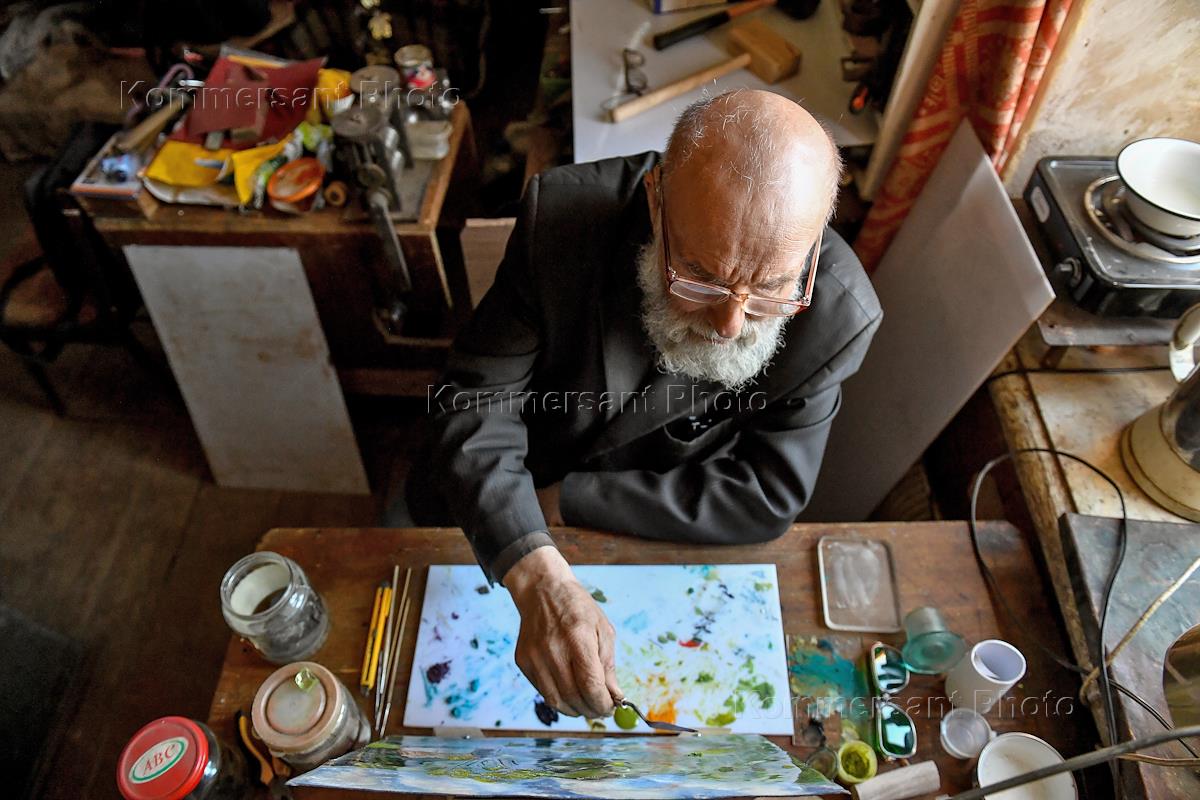 Художники Ростова Великого. Художник-эмальер Александр Алексеев в мастерской.
