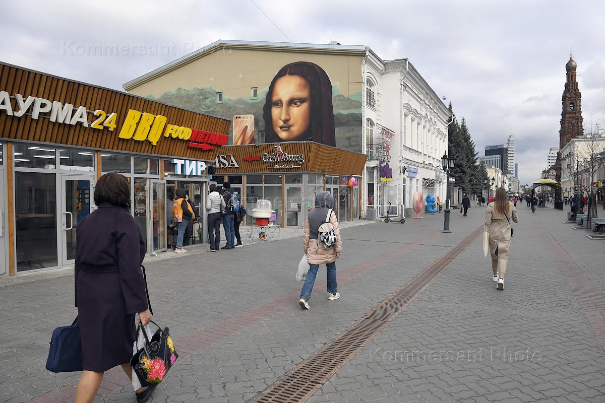 Views of Kazan. Genre photography. Bauman Street. State Bank building.