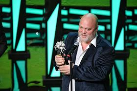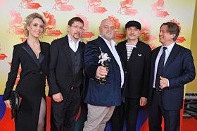 Closing ceremony of the 43rd Moscow International Film Festival (MIFF) at the Moscow Musical Theater. Director Alexei Fedorchenko (center) during the ceremony.