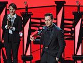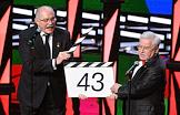Closing ceremony of the 43rd Moscow International Film Festival (MIFF) at the Moscow Musical Theater. Actor Milos Bikovich (right) during the ceremony.