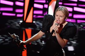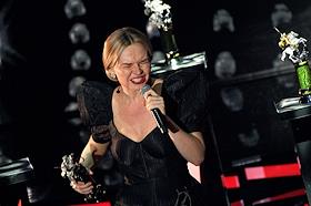 Closing ceremony of the 43rd Moscow International Film Festival (MIFF) at the Moscow Musical Theater. Actress Sofya Resnyanskaya during the ceremony.