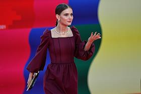 Closing ceremony of the 43rd Moscow International Film Festival (MIFF) at the Moscow Musical Theater. Actress Yekaterina Volkova on the red carpet before the ceremony.