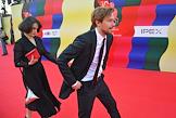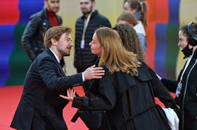 Closing ceremony of the 43rd Moscow International Film Festival (MIFF) at the Moscow Musical Theater. Actor Alexander Petrov (right) and producer Anastasia Sayfulina (left) on the red carpet before the ceremony.