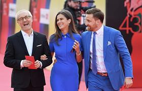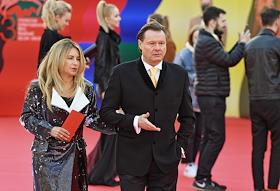 Closing ceremony of the 43rd Moscow International Film Festival (MIFF) at the Moscow Musical Theater. Actress Alena Babenko (left) and her husband, businessman Eduard Suboch (right) on the red carpet before the ceremony.