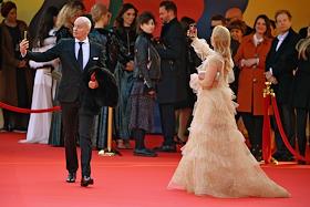 Closing ceremony of the 43rd Moscow International Film Festival (MIFF) at the Moscow Musical Theater. Designer Bella Potemkina on the red carpet before the ceremony.