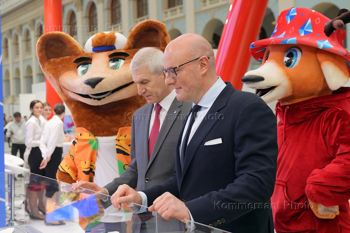 Итоговое заседание коллегии Министерства спорта России в Гостином дворе. Заместитель председателя Правительства России Дмитрий Чернышенко (справа) перед началом заседания.