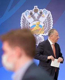 Итоговое заседание коллегии Министерства спорта России Итоговое заседание коллегии Министерства спорта России в Гостином дворе. Заместитель председателя Правительства России Дмитрий Чернышенко (в центре) перед началом заседания.