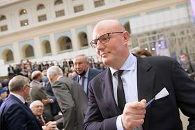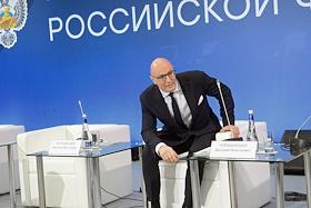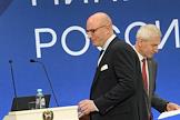 Итоговое заседание коллегии Министерства спорта России в Гостином дворе. Президент Федерации тенниса России Шамиль Тарпищев (в центре) перед началом заседания.