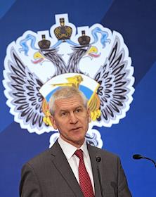 Итоговое заседание коллегии Министерства спорта России в Гостином дворе. Министр спорта России Олег Матыцин (слева) во время заседания.