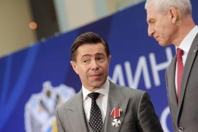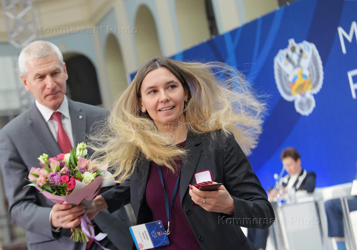 Итоговое заседание коллегии Министерства спорта России в Гостином дворе. Министр спорта России Олег Матыцин (справа) во время церемонии награждения.