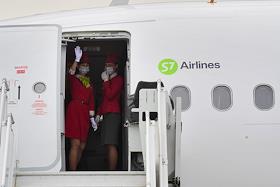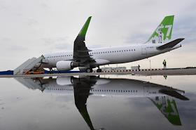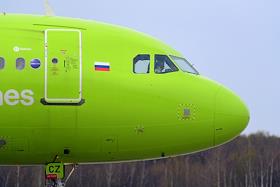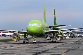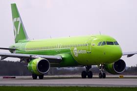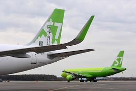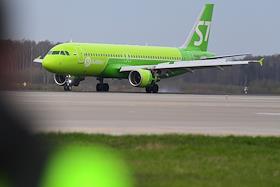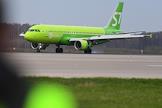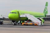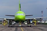 Прилет борта авиакомпании S7 в новой ливрее в аэропоту Домодедово.