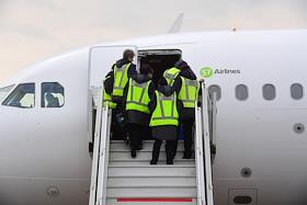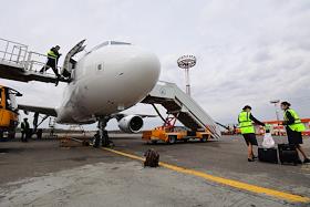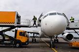 Жанровая фотография. Обслуживание самолета после рейса в международном аэропорту "Домодедово" имени М.В. Ломоносова.