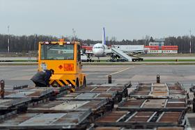 Жанровая фотография. Грузовые кары на летном поле международного аэропорта "Домодедово" имени М.В. Ломоносова.
