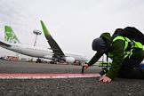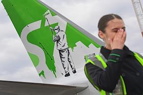 Прилет самолета Airbus A320 авиакомпании S7 Airlines в новой ливрее, созданной Музеем стрит-арта, в международныйо аэропорт "Домодедово" имени М.В. Ломоносова.