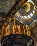 Жанровая фотография. Горящие свечи на фоне купола храма подворья Оптиной пустыни в Санкт-Петербурге.