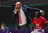 Евролига по баскетболу. Матч между командами УНИКС (Казань, Россия) - "Монако" (Монако, Франция) на стадионе "Баскет-холл". Главный тренер команды УНИКС Димитрис Прифтис (в центре) во время матча.