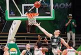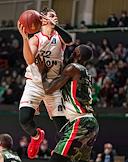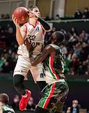 Евролига по баскетболу. Матч между командами УНИКС (Казань, Россия) - "Монако" (Монако, Франция) на стадионе "Баскет-холл". Игрок команды УНИКС Артем Клименко (справа) во время матча.