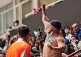 Евролига по баскетболу. Матч между командами УНИКС (Казань, Россия) - "Монако" (Монако, Франция) на стадионе "Баскет-холл". Болельщики команды УНИКС на зрительской трибуне во время матча.