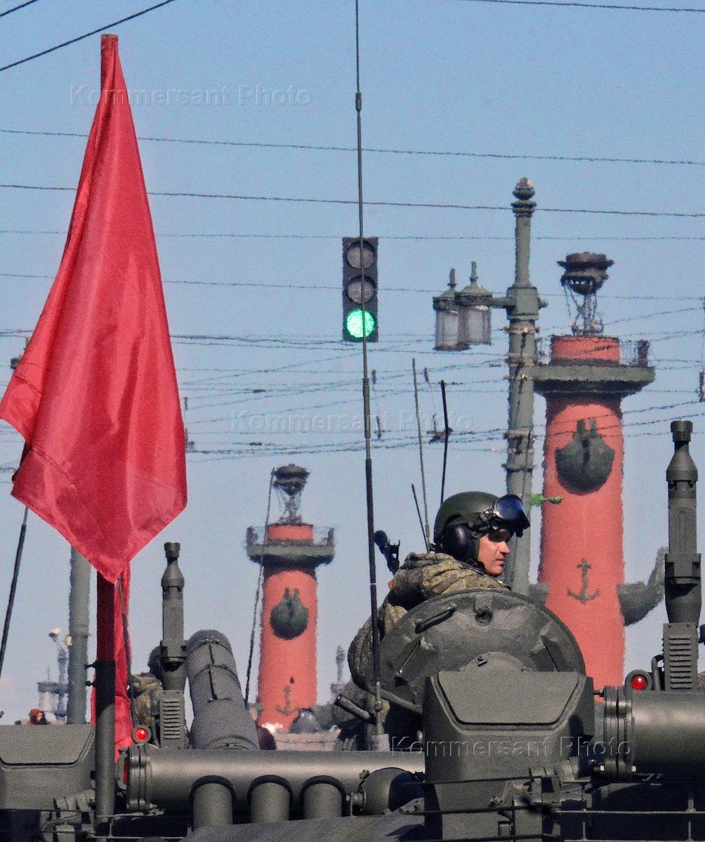 Репетиция военного парада в честь 76-й годовщины Победы в Великой Отечественной войне в Санкт-Петербурге. Жанровая фотография.