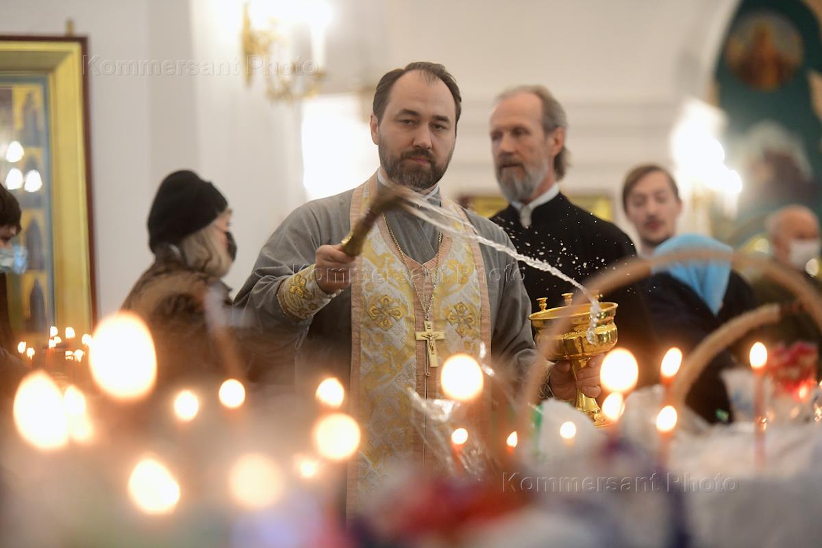 Великая Суббота. Чин освящения пасхальных куличей, яиц и пасхи в канун Светлого Христова Воскресения во Владимирском соборе. Жанровая фотография. Пасхальные яйца.