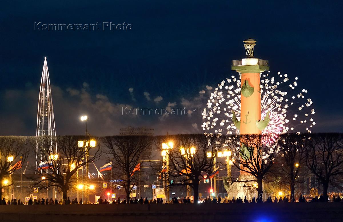 Жанровая фотография. Фейерверк в честь победы футбольного клуба "Зенит" в чемпионате Российской Премьер-лиги (РПЛ).
