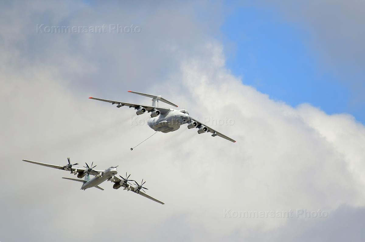 Репетиция парада, посвященного 76-й годовщины Победы в Великой Отечественной войне. Воздушная часть парада. Самолеты во время репетиции.