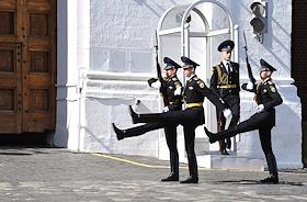 Генеральная репетиция парада, посвященного 76-й годовщине Победы в Великой Отечественной войне, на Красной площади. Жанровая фотография. Почетный караул у ворот Спасской башни Московского Кремля.